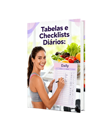 Materiais visuais que facilitam o acompanhamento das refeições, hidratação, exercícios leves e progresso ao longo do desafio